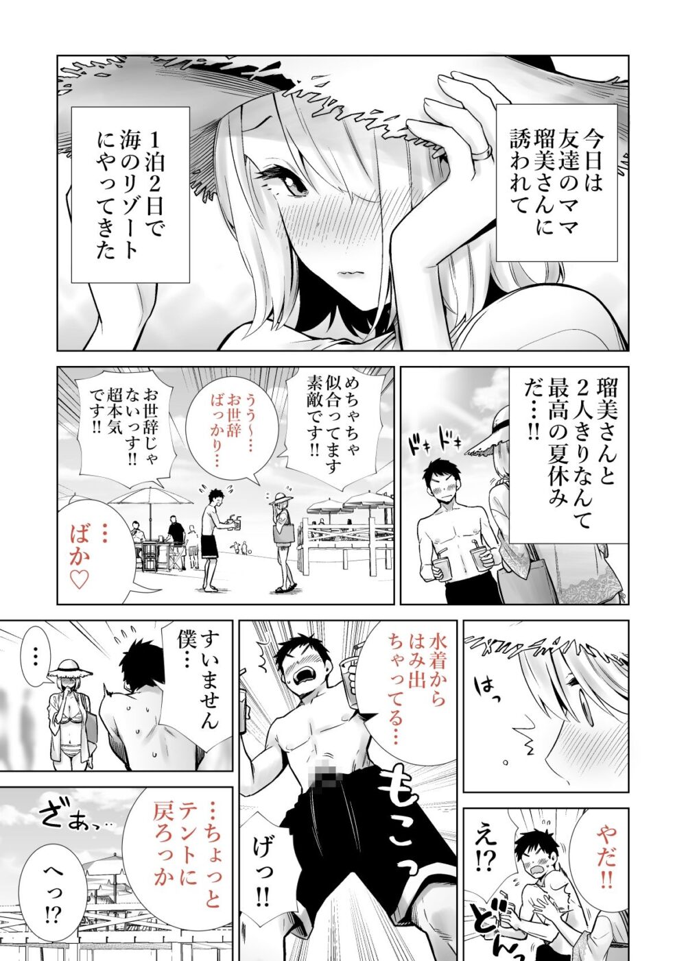 友達のママが大胆な水着姿に興奮!海の幸せなひとときを過ごす夏のエッチな冒険
