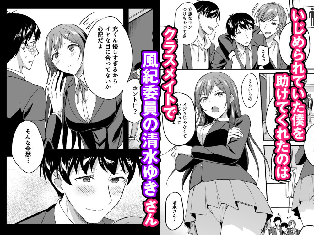 物語は、主人公の藤本充が陽キャたちからデカチンだってからかわれちゃうんだけど、クラスメイトで風紀委員の清水ゆきさんが助けてくれる場面から始まるんだ。清水さんは明るくて可愛くて人気者なんだけど、実は男と遊んでるっていうウワサがあるんだって。でも、そんな噂はただの噂じゃないかなって思っていたんだ。